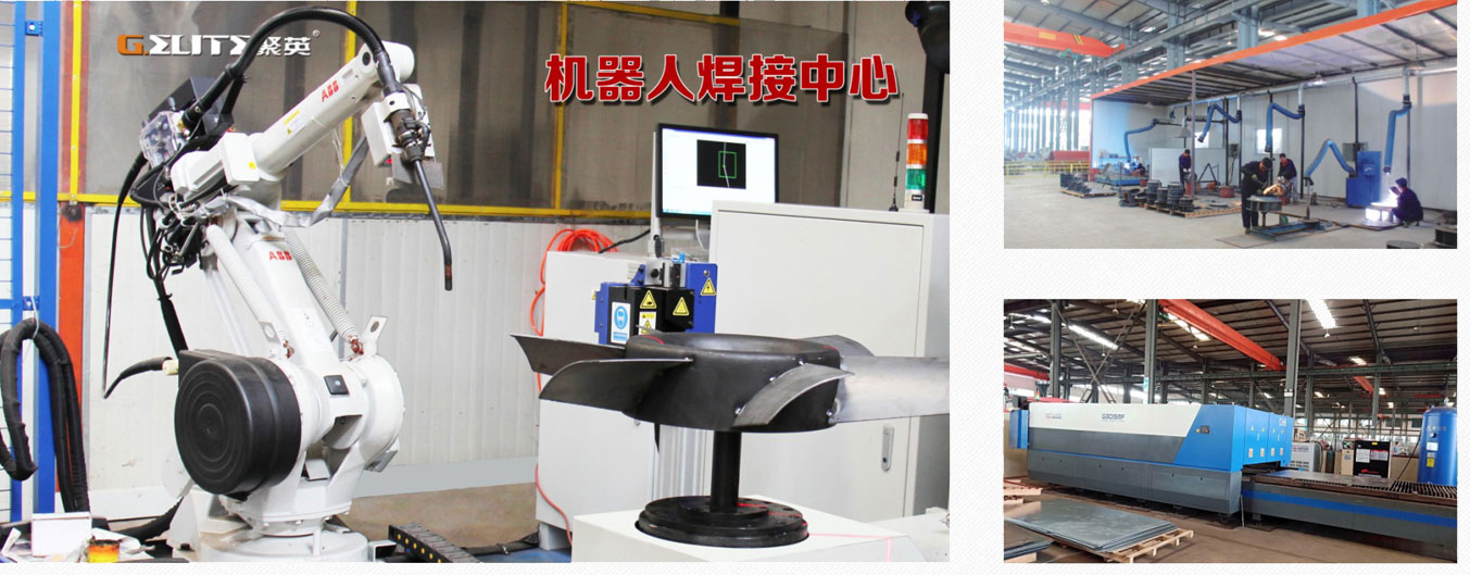 聚英生產中心配備了大量國外先進的裝備工藝,如 ABB機器人焊接中心、大族數控激光切割機、機器人蝸殼焊接機、全自動框架生產線等一 流專 業制造設備,此外,聚英擁有獨立的技術研究測試中心和設備焊接中心,使生產效率、產品外觀、運行質量、參數性能得到強有力的保障和提升。